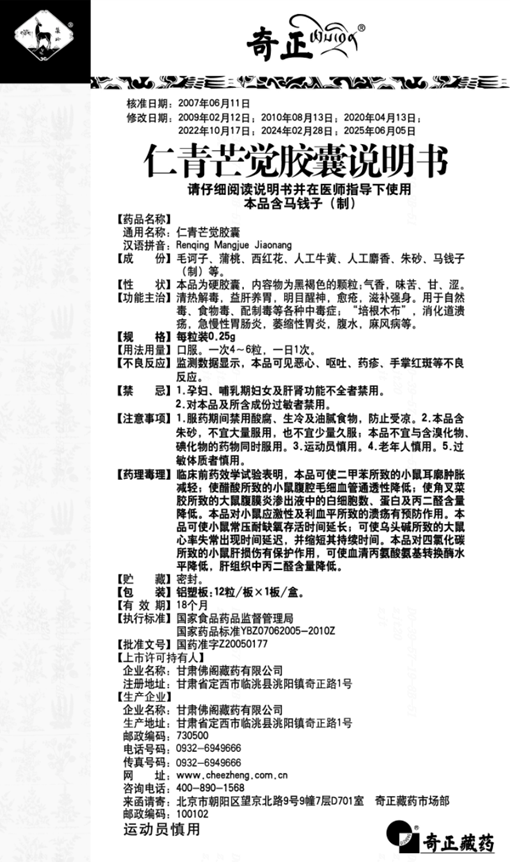 仁青芒覺膠囊新版說明書發(fā)布公告