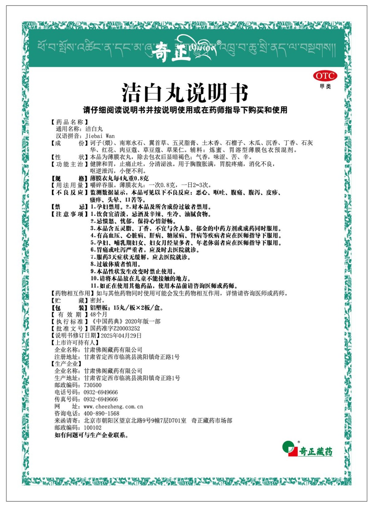 甘肅佛閣藏藥有限公司按照潔白丸(每4丸重0.8g)獲批的國家藥品監(jiān)督管理局藥品補(bǔ)充申請通知書內(nèi)容,對潔白丸(每4丸重0.8g)藥品說明書中的【不良反應(yīng)】、【禁忌】和【注意事項】進(jìn)行了修訂及備案,現(xiàn)將新版說明書予以發(fā)布,如您需要更為詳細(xì)的信息或有特定的問題,可以聯(lián)系客服400-890-1568或撥打企業(yè)電話:0932-6949666。